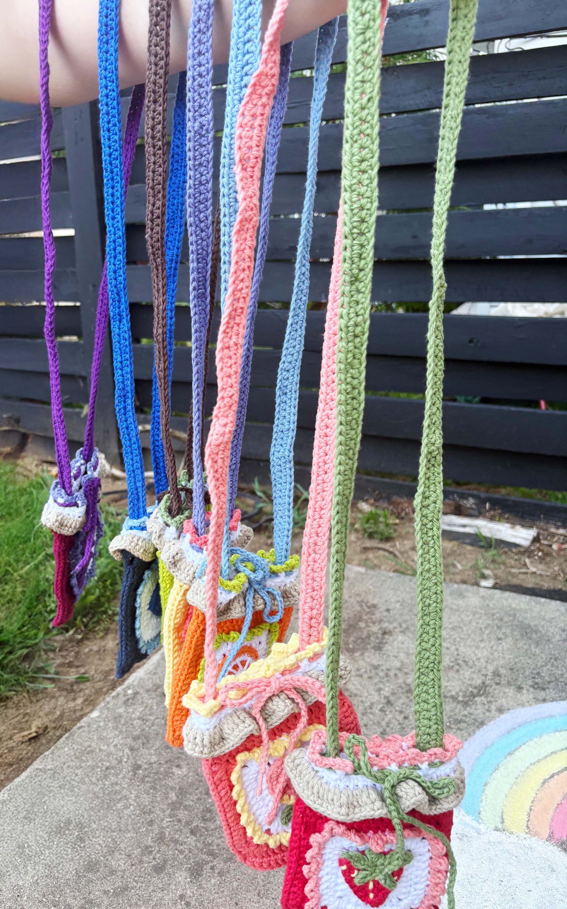 Brighten your day with this playful handmade crochet drawstring bag, crafted from durable cotton yarn that outlasts acrylic alternatives. Shaped like a cute jar of jam and available in flavors like strawberry, peach, and grape, it’s the perfect fruity accessory to carry your essentials with a fun, lasting twist. Comfortably holds cell phone and essentials!